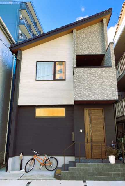 室内に自転車を置く家、狭小地の家、土間のある家